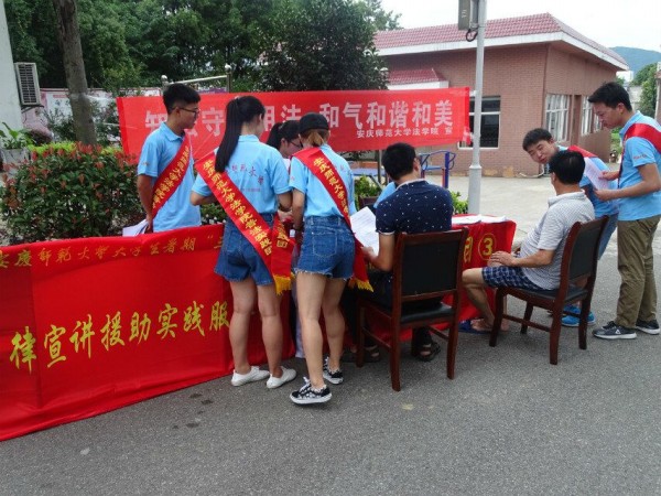 7月8日上午,365英国上市网站官网2017年暑期“三下乡”法律宣讲援助实践服务团在燎原社区举办了以“知法守法用法,和气和谐和美”为主题的大型政策宣讲与法律咨询活动。